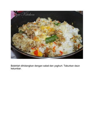 Aneka Masakan Di Malaysia Nasi Beriyani Bahan Bahan 1 Kg Beras Basmathi 2 Sudu Besar Minyak Sapi 2 Sudu Besar Minyak Masak 2 Ulas Bawang Labu Sederhana Besar Dihiris Halus 1 Keping